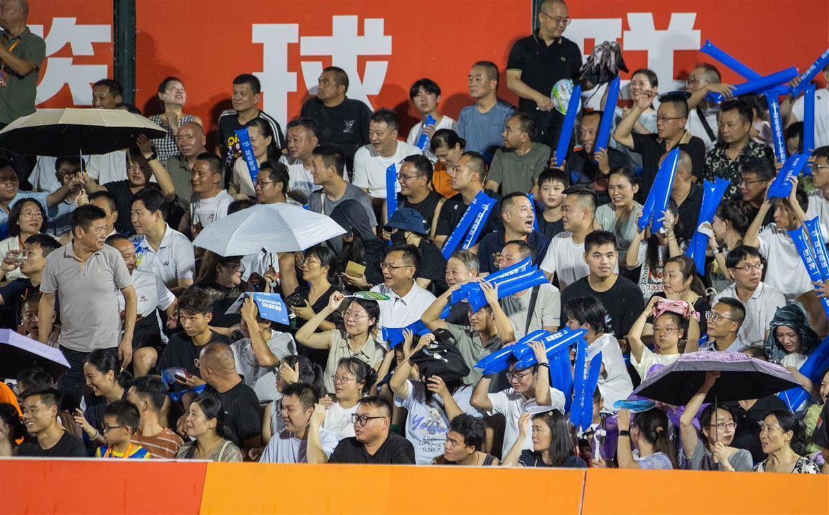 球迷冒雨观赛。