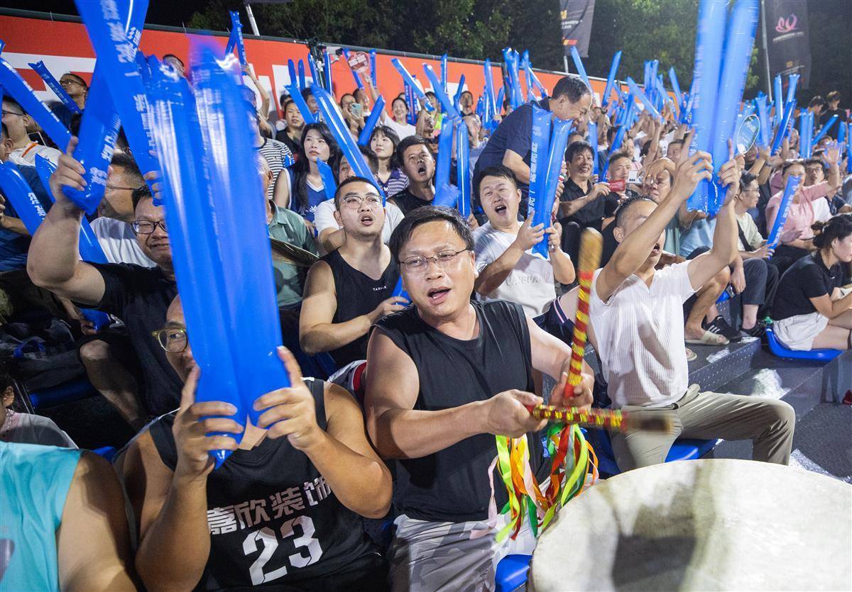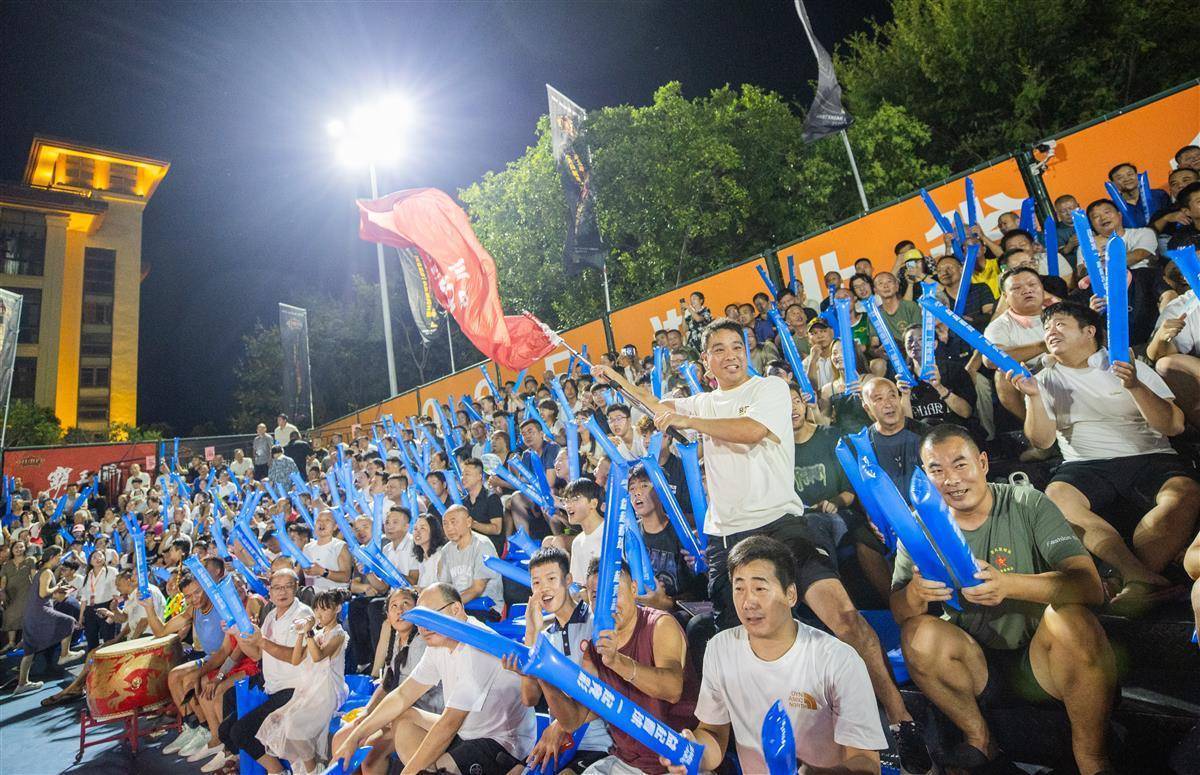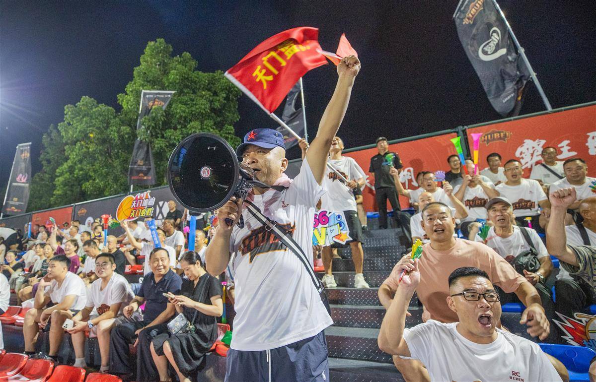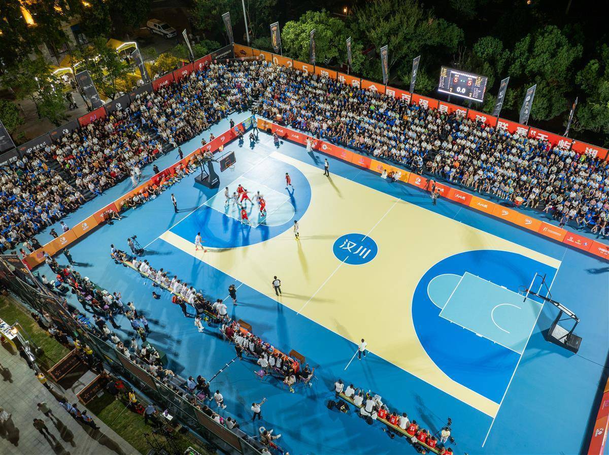8月30日晚,汉川天屿湖运动中心室外篮球场,汉川队对阵天门队比赛正在进行中。(湖北日报全媒记者 柯皓 摄)