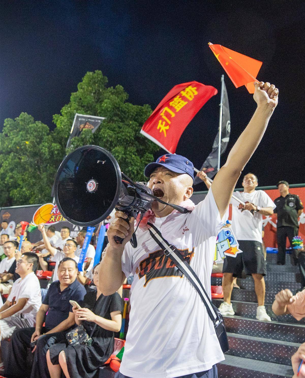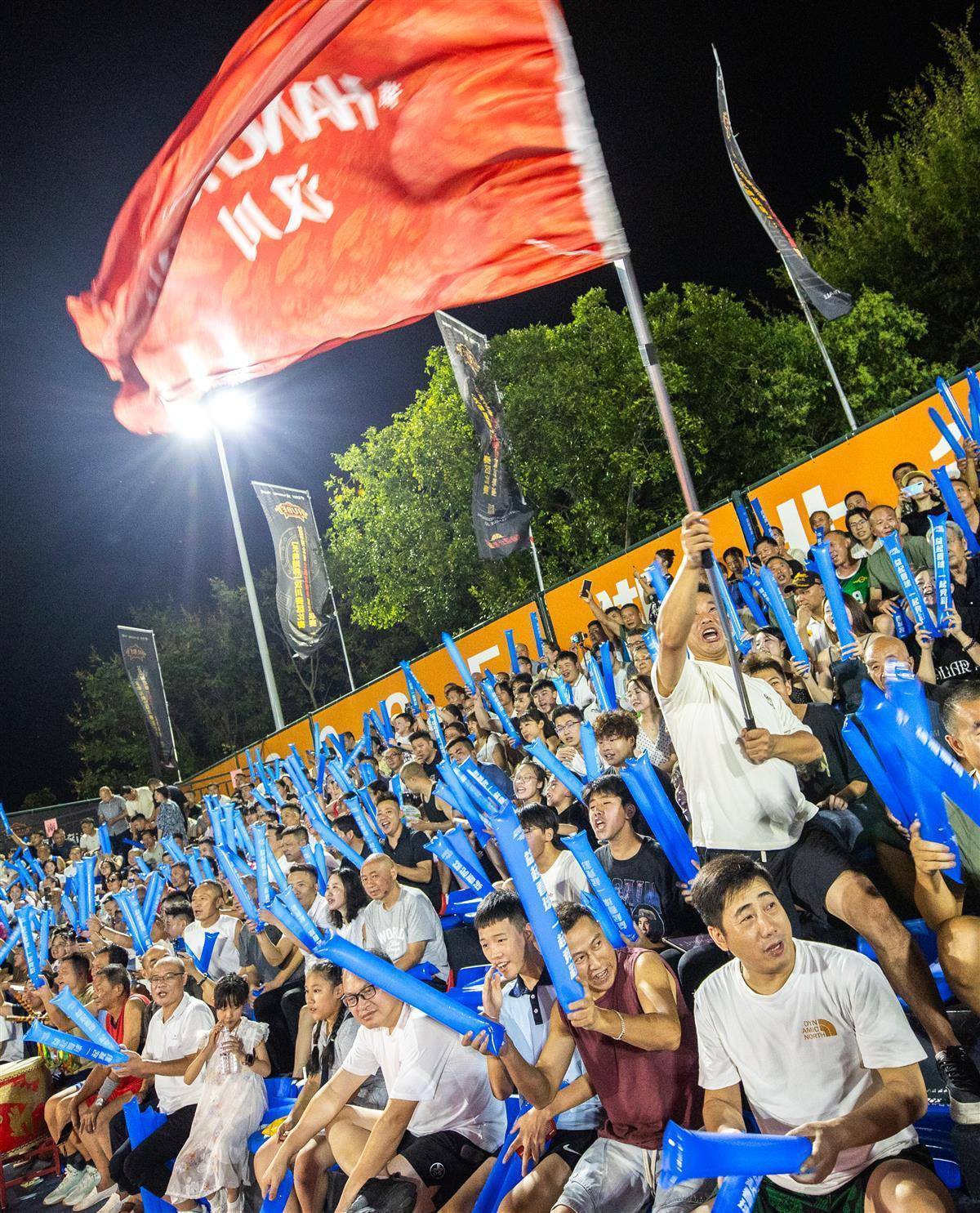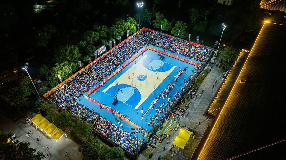 8月30日晚,汉川天屿湖运动中心室外篮球场,汉川队对阵天门队比赛正在进行中。(湖北日报全媒记者 柯皓 摄)